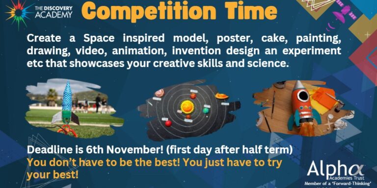 World Space Week Discovery student science competition – the deadline is 6th November! #DiscoScience #Worldspaceweek2023 #DiscoCompetition https://discovery.alphaacademiestrust.co.uk/wp-content/uploads/2023/10/Competition-Time-1.mp4
